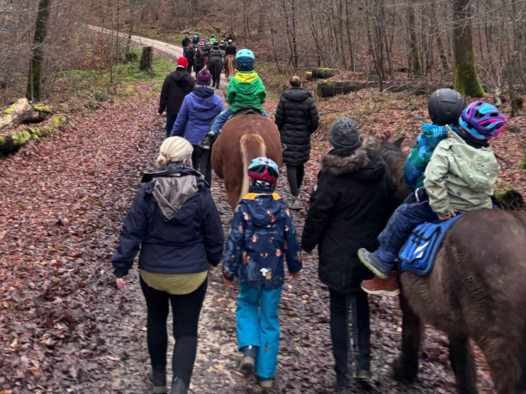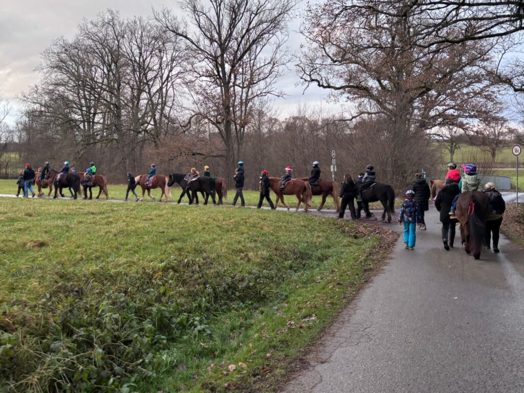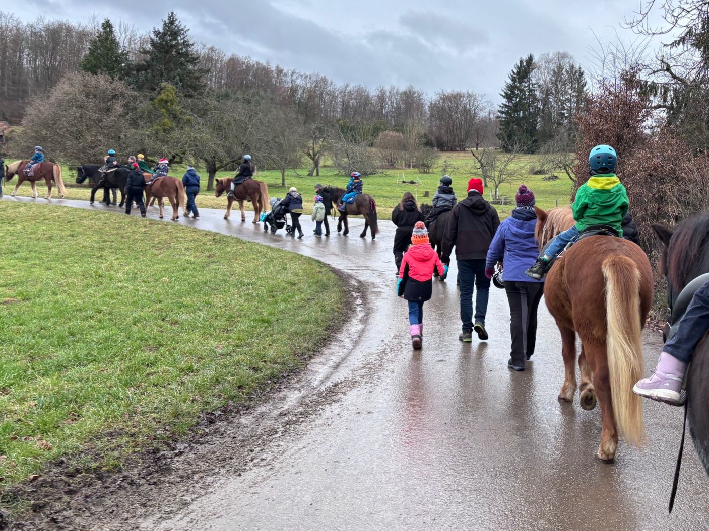 Dick eingepackt und teilweise weihnachtlich geschmückt machten sich die Kinder unserer Einsteller und Reitbeteiligungen gemeinsam mit ihren Eltern gestern auf zu einem Nikolausritt durchs Tiefenbachtal.
